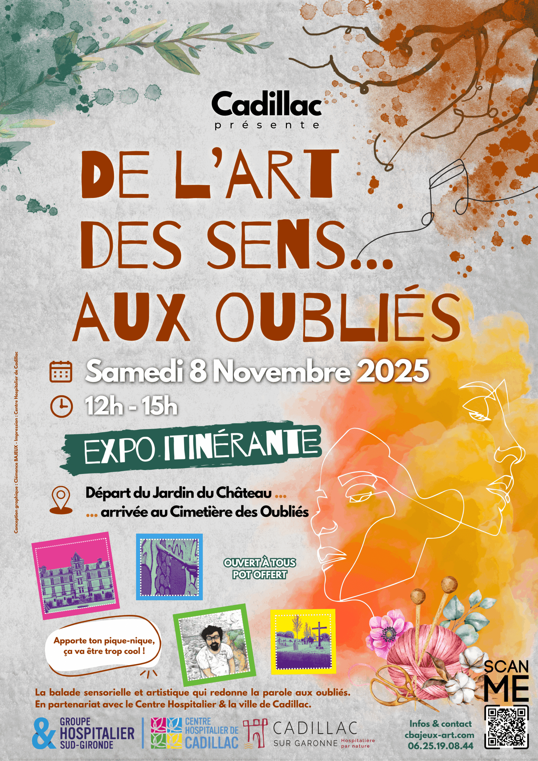 Depuis 2024, la mairie de Cadillac-sur-Garonne est associé au Centre Hospitalier de Cadillac, dans le cadre de leur convention de partenariat, au projet « De l’Art des Sens…aux Oubliés ». Ce travail sur la mémoire et le patrimoine est un réel témoignage culturel sur la diversité et l’égalité des chances, à travers les arts visuels, la transmission et la richesse des échanges humains.