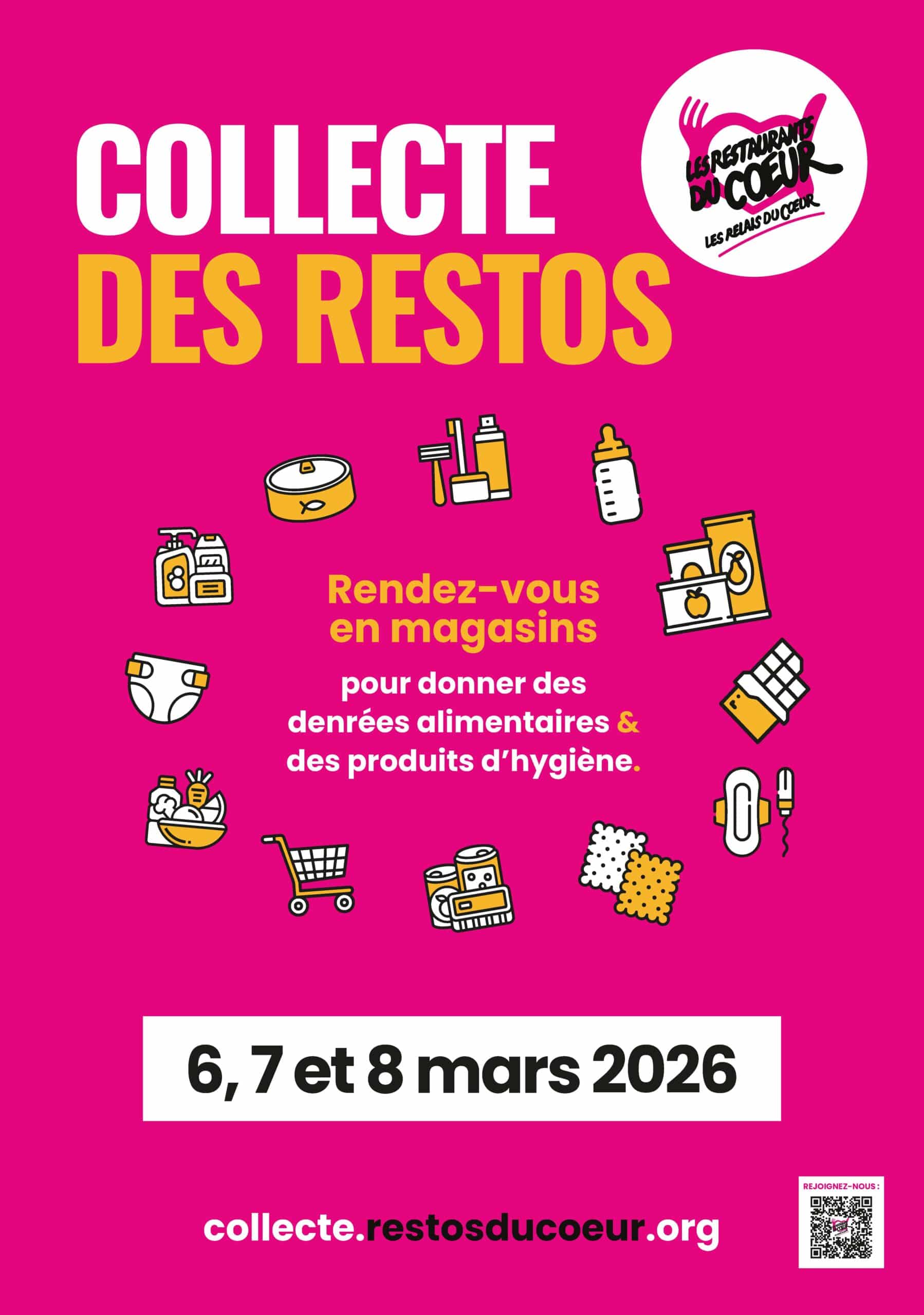 La collecte annuelle des Restos du Cœur aura lieu les 6, 7 et 8 mars 2026.